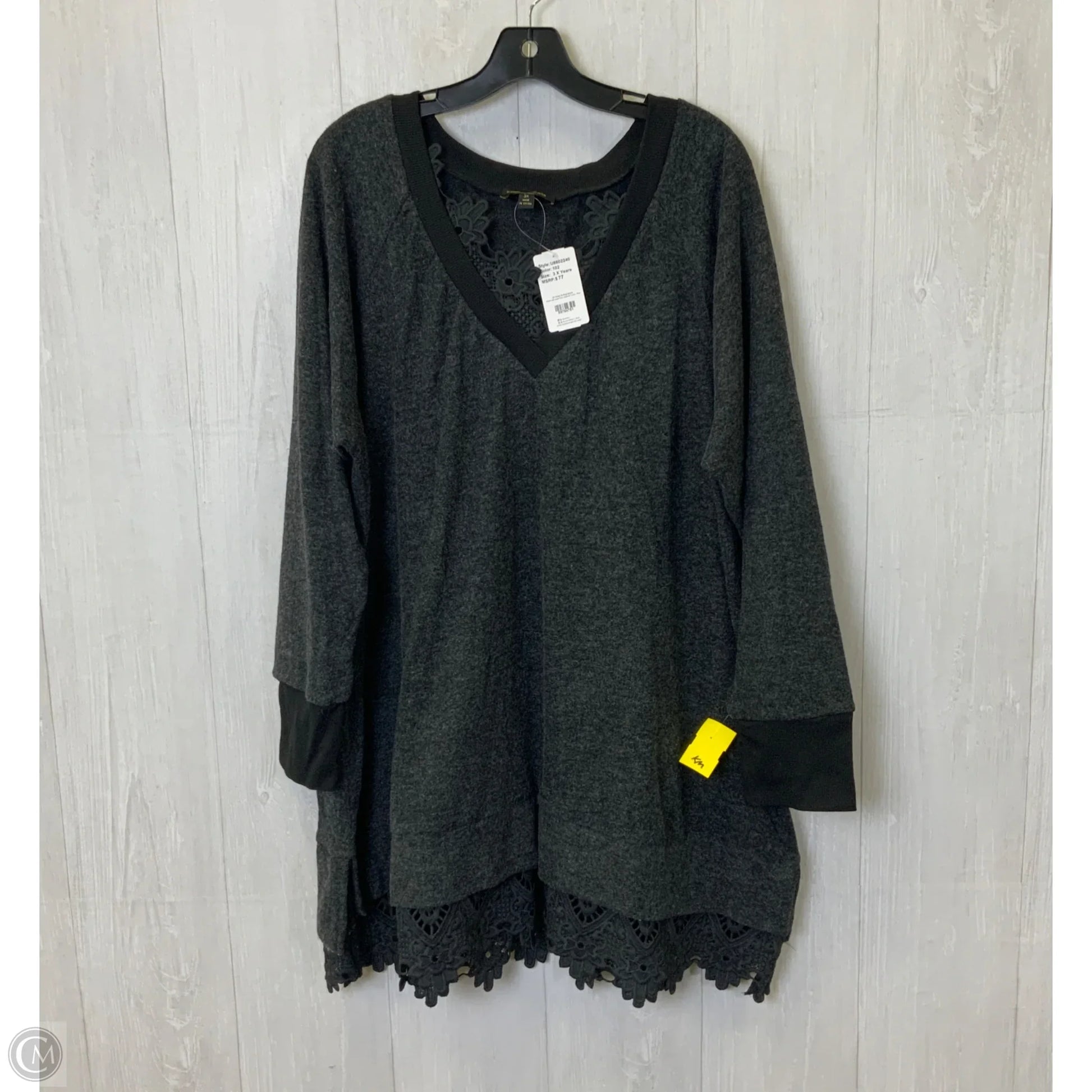 Tunic Long Sleeve By Suzanne Betro In Black & Grey, Size: 3x