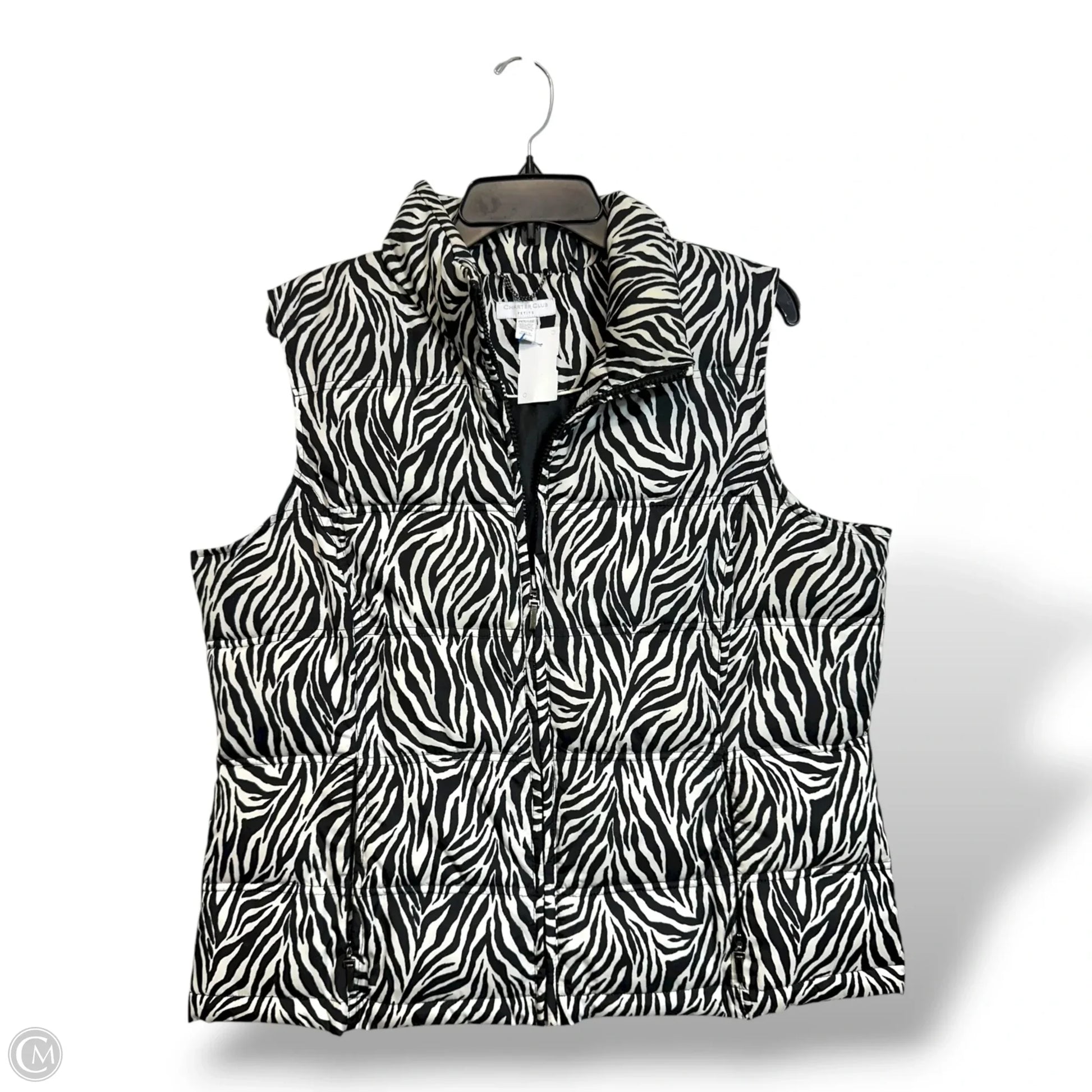 Vest Puffer & Quilted By Charter Club In Black & White, Size: Lp