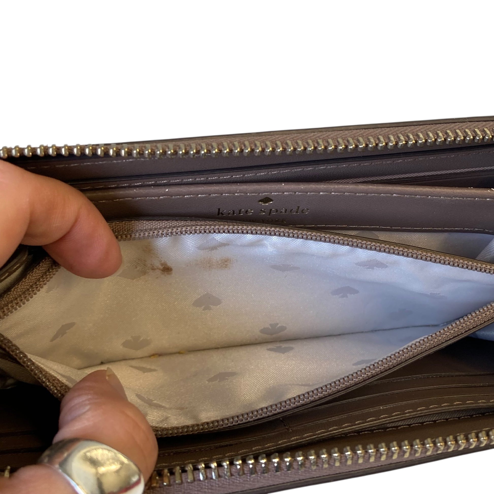 Kate Spade brown wallet: stylish, practical, medium size for everyday use.