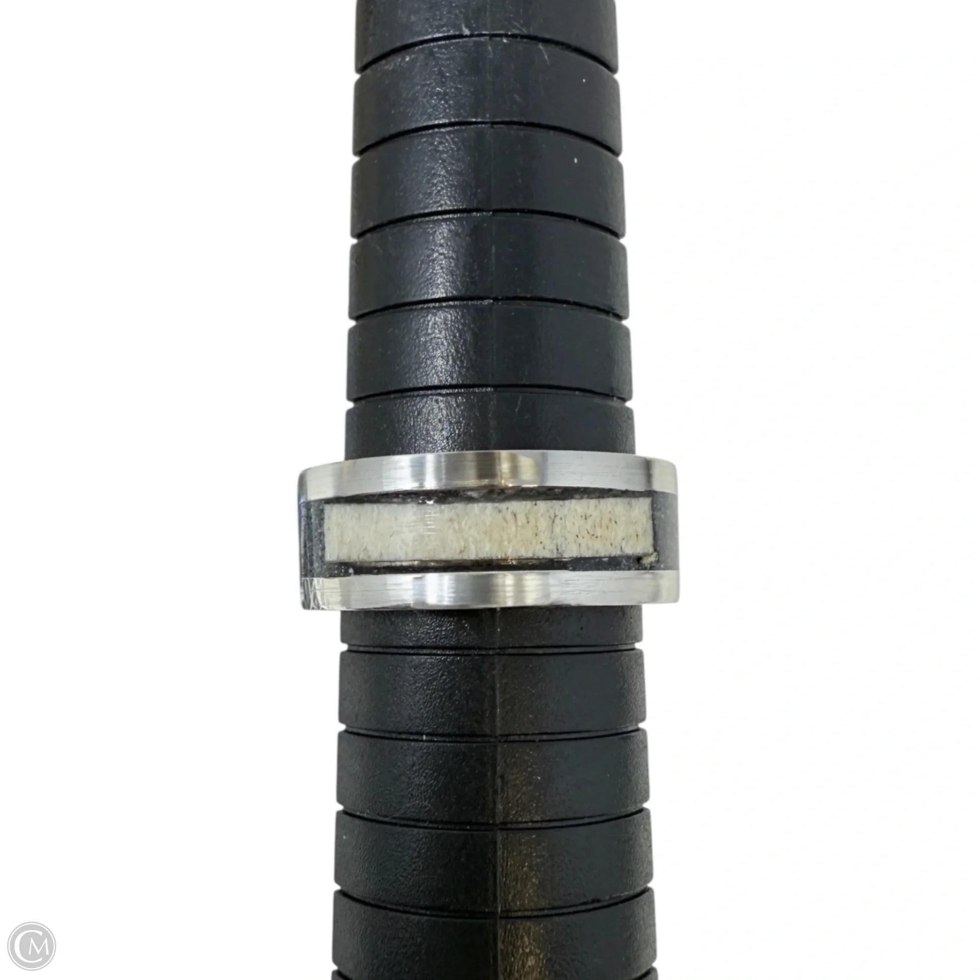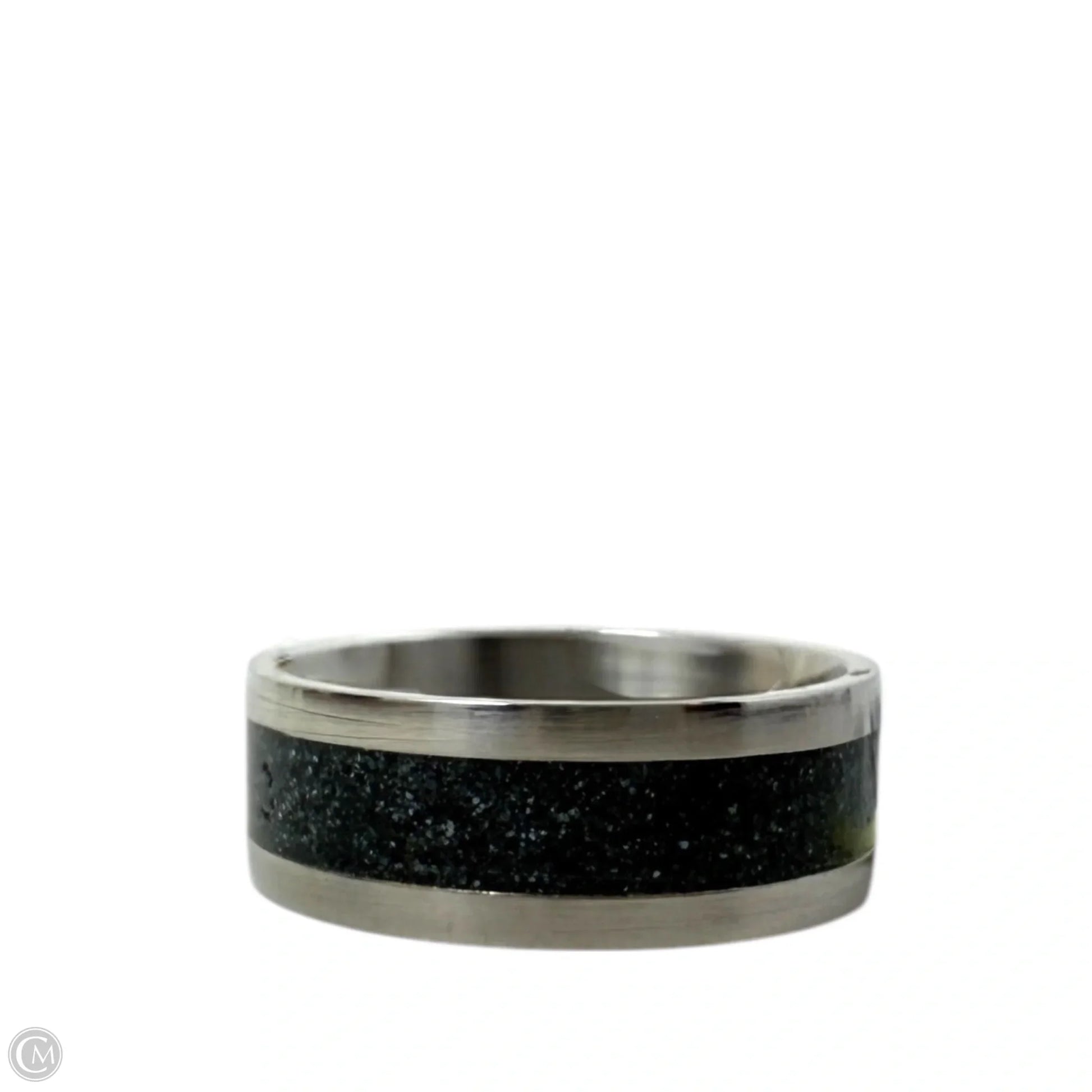 White Tail Antler & Black Quartz Inlay Band Ring, Size: 9